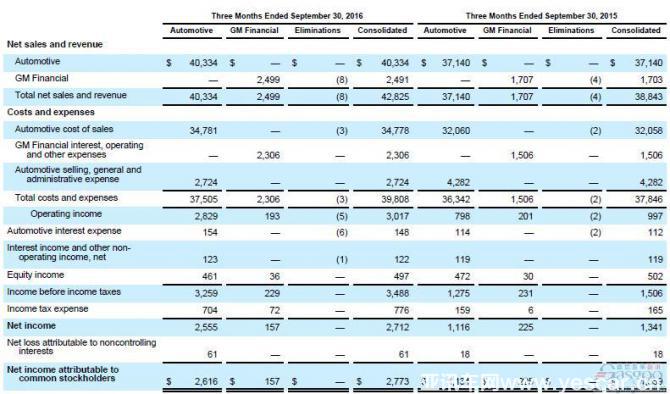 2016年第三季度,通用凈營(yíng)業(yè)收入(Net Sales and Revenue)為428.25億美元,對(duì)比2015年第三季度的388.43億美元,同比攀升10.3%;前三季度累計(jì)營(yíng)業(yè)收入1224.62億美元,較2015年同期的1127.35億美元,同比增長(zhǎng)8.6%。