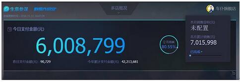 14:47分,成交額破600萬,超過全年雙11全天成交額。