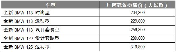 全新BMW 1系運動轎車廠商建議零售價為: