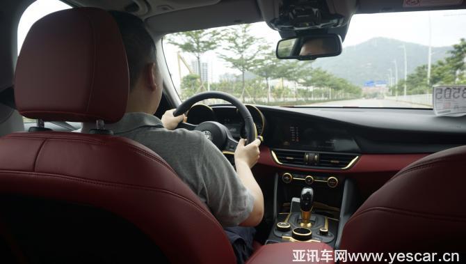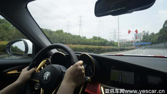 在一般道路上駕駛,由于Giulia的頭段加速并不粗暴,就算在動(dòng)態(tài)模式下地板油起步,Giulia也是很從容地出去,并沒有很沖的感覺,但沒推背感并不代表其速度不快,Giulia起步后很快就可以突破一般城市快速干道的最高限速,可以說Giulia可以在你不知不覺中就開得很快,正因其動(dòng)力輸出十分平順,所以在試駕過程中我時(shí)不時(shí)也要看看時(shí)速表有沒有超速,由于動(dòng)力儲(chǔ)備充足,Giulia在超車時(shí)動(dòng)作十分利索,一點(diǎn)都不含糊,可以說隨心所欲,也因?yàn)槠鋺覓斓恼{(diào)教,在激烈駕駛時(shí)感覺懸掛支撐性還是能再好一點(diǎn)