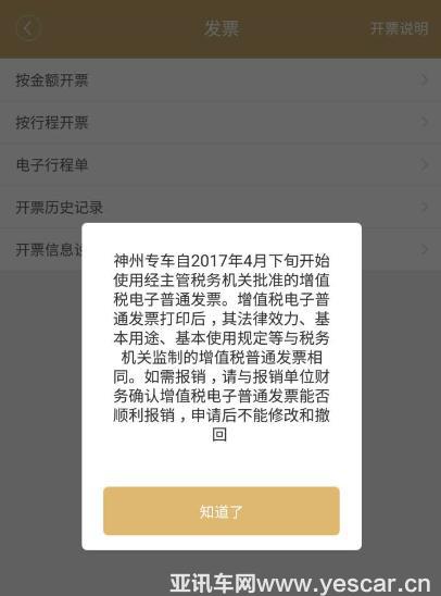 據(jù)了解,神州專車在APP更新后增加了開具電子發(fā)票功能,自4月下旬開始使用經(jīng)主管稅務(wù)機(jī)構(gòu)批準(zhǔn)的增值稅電子普通發(fā)票。獲得電子發(fā)票的方法非常簡單,只需要登陸最新版神州專車APP,點(diǎn)擊左上角用戶頭像后就能看到“我的發(fā)票”,點(diǎn)擊進(jìn)入后就能按照金額或者行程等開具電子發(fā)票,在“開票信息設(shè)置”中輸入個(gè)人郵箱地址及發(fā)票類型,神州專車將把電子發(fā)票、電子行程單全部發(fā)到用戶指定的郵箱中。用戶可以隨時(shí)查看自己的行程,也可以在合適的時(shí)間一次性打印自己需要報(bào)銷的發(fā)票,非常方便、人性化。