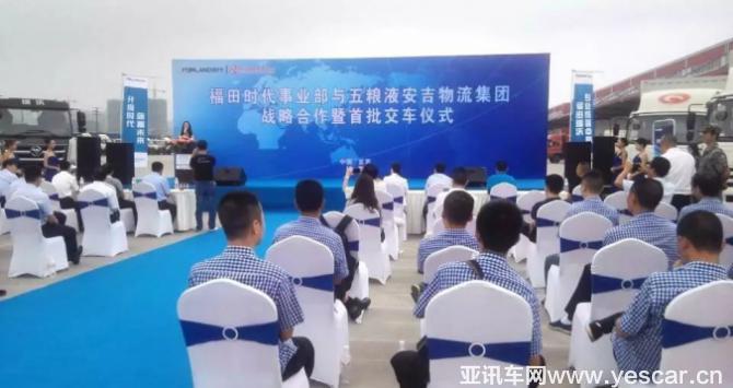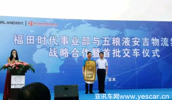 2017年9月16日在這秋高氣爽的日子里,帶著美好的祝福和豐收的喜悅,福田時代與五糧液安吉物流集團戰(zhàn)略合作暨交車儀式圓滿落幕?;顒釉?“長江的源頭,美酒的故鄉(xiāng)”——宜賓隆重開展,福田商用汽車集團高級副總裁、時代業(yè)務(wù)總監(jiān)、總經(jīng)理王術(shù)海先生、福田汽車集團總經(jīng)理助理、時代事業(yè)部副總經(jīng)理、營銷公司總經(jīng)理鄭夕亮先生、時代事業(yè)部副總經(jīng)理、技術(shù)研究院院長王善健先生、安吉集團總裁付敏女士、副總裁張濱先生、安吉集團總裁助理、安吉物流公司總經(jīng)理劉魯軍先生等共同出席了本次活動。