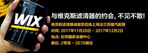 作為規(guī)模僅次于德國(guó)法蘭克福母展的全球第二大汽車零配件品牌展會(huì)、亞洲規(guī)模最大的汽車零部件丶維修檢測(cè)診斷設(shè)備及汽車用品展覽會(huì),2017年法蘭克福(上海)汽配展(Automechanika Shanghai)將于本月29日至12月2日在上海虹橋地區(qū)的國(guó)家會(huì)展中心(上海)盛大舉行,曼胡默爾集團(tuán)旗下的美國(guó)維克斯濾清器(WIX Filter)將再度亮相這場(chǎng)全球汽車產(chǎn)業(yè)人士的年度盛會(huì)。