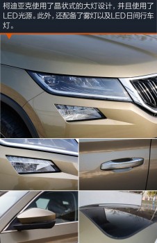 柯迪亞克使用了晶狀式的大燈設(shè)計,并且使用了LED光源。此外,還配備了霧燈以及LED E 間行車燈。