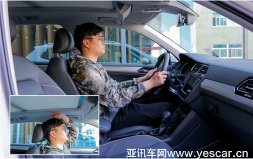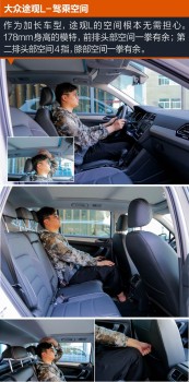 作為加長車型,途觀L的空間根本無需擔(dān)心。178mm身高的模特,前排頭部空間一拳有余; 第二排頭部空間4指,膝部空間一拳有余。