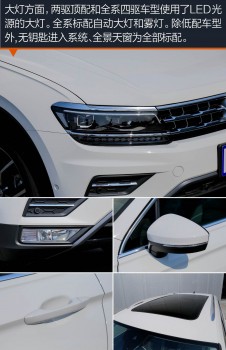 大燈方面,兩驅(qū)頂配和全系四驅(qū)車型使用了LED光源的大燈。全系標(biāo)配自動大燈和霧燈。除低配車型外,無鑰匙進入系統(tǒng)、全景天窗為全部標(biāo)配。