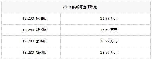 這次我們體驗(yàn)的車型是2018款柯珞克TSI280旗艦版,也就是配備1.4T發(fā)動(dòng)機(jī)的頂配車型,也是全系車型的頂配車型。并線輔助、自動(dòng)泊車、主動(dòng)剎車等配置都是它獨(dú)有的,看得出其在主動(dòng)安全配置方面會(huì)更全面,但像雙區(qū)空調(diào)、電動(dòng)調(diào)節(jié)座椅、無鑰匙進(jìn)入、全景天窗和自適應(yīng)巡航等配置,則是比它低一個(gè)配置的TSI280豪華版也有的配置。