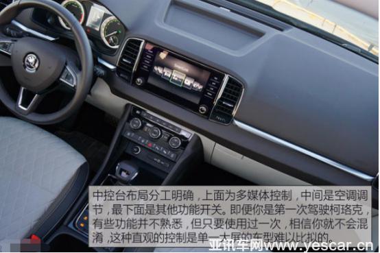 從斯柯達(dá)最高級的速派,到入門級的晶銳,斯柯達(dá)車型的內(nèi)飾都有很強(qiáng)的傳承性,但這就像你一個(gè)老朋友,讓你感覺可靠而熟悉,柯珞克也是這樣表現(xiàn)的??络罂说膬?nèi)飾設(shè)計(jì)非常簡潔,布局錯(cuò)落,分工明確,有一種“自來熟”的感覺。所以即便你是第一次駕駛柯珞克,有些功能并不熟悉,但只要使用過一次,相信你就不會(huì)忘記或者混淆,這樣的人性化和便利程度,是那些只有一塊大屏幕車型所不能比擬的。