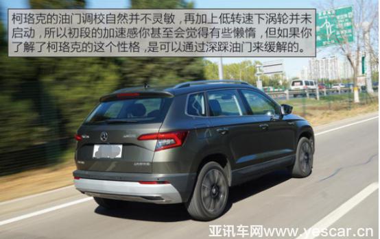 1.4T發(fā)動(dòng)機(jī)對于柯珞克來說完全夠用了,在之前的測試中,其跑出了9.16s的成績,其實(shí)如果不是對變速箱的保護(hù),這個(gè)時(shí)間還會(huì)更快。動(dòng)力如此夠用,油門的調(diào)校自然不用那么靈敏,柯珞克也是如此,再加上低轉(zhuǎn)速下渦輪并未啟動(dòng),所以初段的加速感你甚至?xí)X得有些懶惰,但如果你了解了柯珞克的這個(gè)性格,是可以通過深踩油門來緩解的,