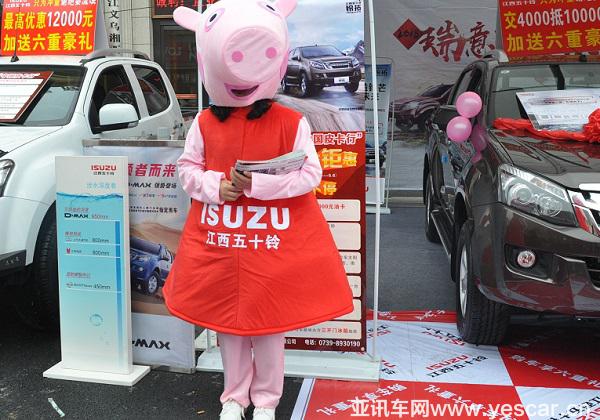 江西五十鈴在現(xiàn)場放置了小豬佩奇的卡通人偶起到了十分吸睛的效果,連小編都忍不住童心大發(fā),看了又看。與此同時(shí),江西五十鈴在此次活動(dòng)中打出了12000元的最高優(yōu)惠,還加送購車者六重豪禮,超值鉅惠體現(xiàn)著江西五十鈴十足的誠意。