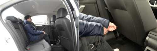 空間方面,昕銳長寬高尺寸為4512/1706/1469mm,軸距為2603mm,處于同級較高水平。身高170cm的體驗(yàn)者坐進(jìn)前排座椅,頭部空間還有1拳+4指,保持前排座椅不變,該體驗(yàn)者坐進(jìn)后排座椅,頭部空間仍然有1拳半空余,腿部空間則有2拳多余量,能滿足大多數(shù)消費(fèi)者的乘坐需求。后備廂空間為466L,且地臺較平,實(shí)用性很強(qiáng)。