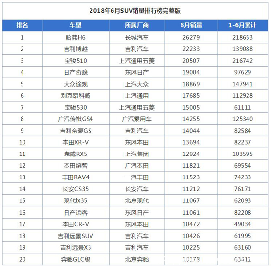 吉利汽車再創(chuàng)記錄 4款SUV產(chǎn)品擠進銷量前20