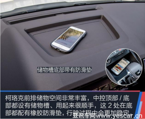 探歌的儲物空間數(shù)量與柯珞克相近,但是在開口面積和儲物能力上還有一定的不足之處。中央扶手箱空間實(shí)在是太小了,放個手機(jī)錢包基本就滿了。