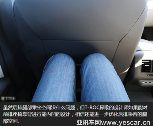 相比海外版的探歌,寬度并沒有增加,坐在探歌里,并沒給人SUV寬敞的感覺,反而和高爾夫沒有太大的差別。再加上探歌第二排地板明顯凸起,較大的隆起讓本來就不富裕的后排中央位置顯得更加狹小。