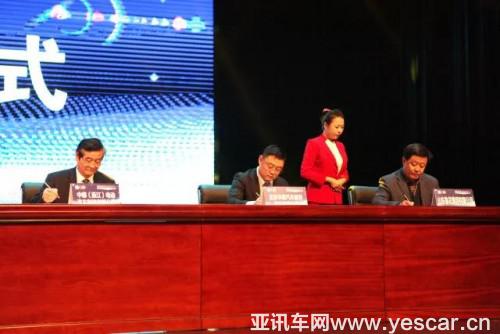 北京華奧汽車(chē)服務(wù)股份有限公司董事長(zhǎng)張曉龍(中)現(xiàn)場(chǎng)與吉大簽署合作協(xié)議