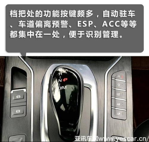 檔把處的功能按鍵頗多,自動(dòng)駐車、車道偏離預(yù)警、ESP、ACC等等都集中在一處,便于識別管理。