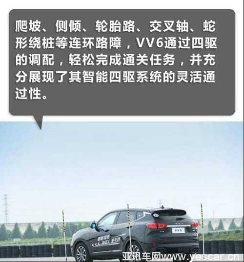 在四驅(qū)性能方面,VV6應(yīng)用博格華納智能四驅(qū)系統(tǒng),可實(shí)現(xiàn)0-100%扭矩連續(xù)可變傳遞,為車輛提供卓越的牽引性能和運(yùn)動(dòng)性能。在試駕現(xiàn)場,我們親自測試爬坡、側(cè)傾、輪胎路、交叉軸、蛇形繞樁等連環(huán)路障,VV6通過四驅(qū)的調(diào)配,輕松脫困,并充分展現(xiàn)了其智能四驅(qū)系統(tǒng)的靈活通過性。