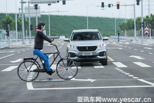VV6所應(yīng)用的AEB技術(shù),可以識別車輛、行人、自行車,是50萬級別車型內(nèi)唯一具備該功能的車型。VV6車輛和行人識別采用前攝像頭與前雷達(dá)融合方案實現(xiàn),自行車采用前雷達(dá)識別,小于警報距離時就進(jìn)行警報提示,而小于安全距離,當(dāng)碰撞無法避免,駕駛員沒有采取任何制動措施時,系統(tǒng)會控制車輛在車速限制范圍內(nèi)完全剎停避免碰撞。面對障礙裝置與行人假人,VV6啟動AEB主動式緊急制動系統(tǒng),完美規(guī)避碰撞風(fēng)險。
