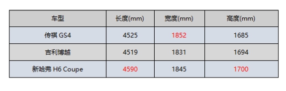 通過更直觀的數(shù)據(jù)展示,我們可以快速看出新哈弗H6 Coupe除了車寬比傳祺GS4稍低,車長和車高明顯更勝一籌。更大的塊頭帶來的是更加寬敞舒適的駕乘體驗,如果你對寬敞有需求,新哈弗H6 Coupe無疑是一個不錯的選擇。