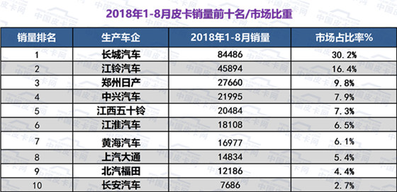 隨著皮卡政策解禁的推進(jìn),多項(xiàng)利好政策的助力,全國皮卡市場正以蓬勃之勢發(fā)展著。據(jù)中國皮卡網(wǎng)獲取的全國主流皮卡車企工業(yè)銷量數(shù)據(jù)顯示,2018年1-8月,全國累計(jì)銷售皮卡278211輛,同比增長14.5%;8月單月售出32275輛,同比增長10.2%。從數(shù)據(jù)不難看出,長城皮卡的勢頭比往年更甚,以月銷10365輛,同比增長32.4%的絕對優(yōu)勢,占據(jù)國內(nèi)皮卡銷冠的“C位”。而在銷量領(lǐng)先的背后,是長城皮卡強(qiáng)悍產(chǎn)品實(shí)力和精準(zhǔn)市場布局的支撐。