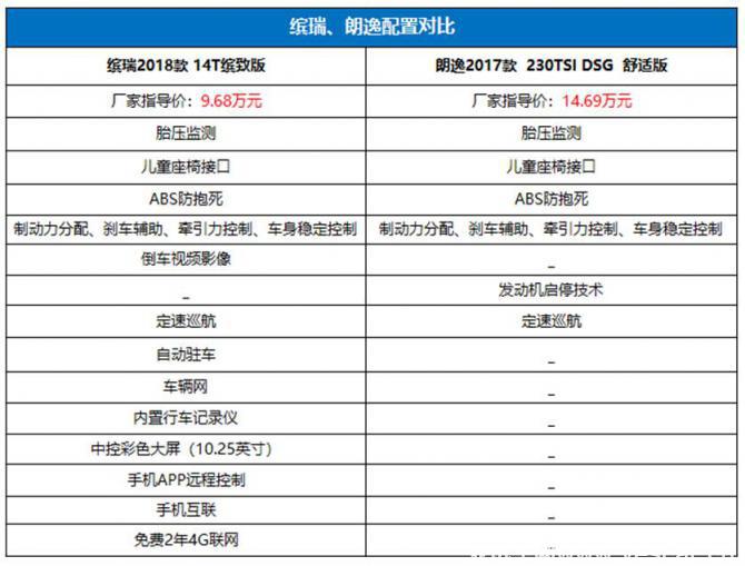 配置PK:朗逸基礎配置不缺席,繽瑞配置更豐富