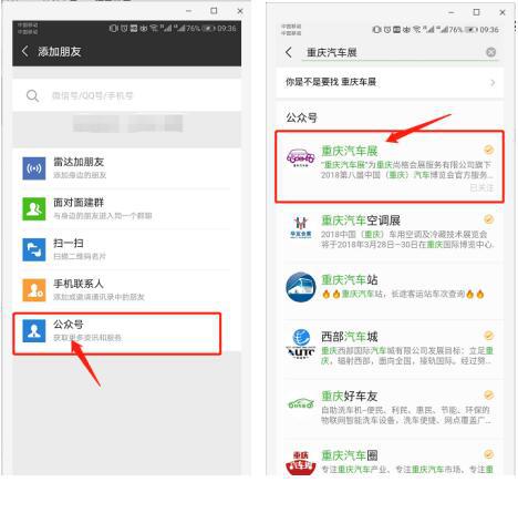 微信右上角“添加朋友”→公眾號→搜索“重慶汽車展”點擊關(guān)注即可。