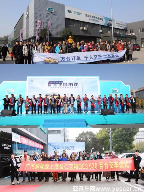 11月24日-25日,一場別開生面、聲勢浩大的廣汽新能源GE3 530“萬臺訂單,千人交車”活動,分別在北京、上海和杭州三個城市舉行。作為廣汽新能源的“明星爆款”車型,GE3 530自8月27日上市以來,人氣爆棚,持續(xù)熱銷,目前已累計訂單破萬臺。舉辦此次特別的集中交車活動,廣汽新能源希望能為喜提愛車的新車主增添更多喜悅。