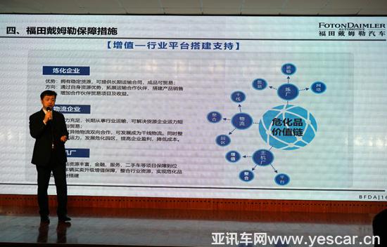 福田戴姆勒汽車?;犯呒夗椖拷?jīng)理 陳光先生進行課件講解
