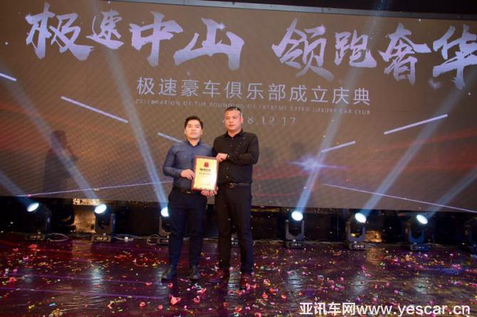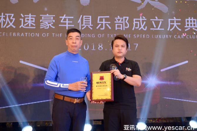 極速名車中山公司董事長(zhǎng)藍(lán)梓航先生在發(fā)布會(huì)上致辭,并給四位會(huì)員頒發(fā)了豪車俱樂部會(huì)員牌匾,歡迎他們加入俱樂部這個(gè)大家庭,往后享受俱樂部提供的精致服務(wù)。
