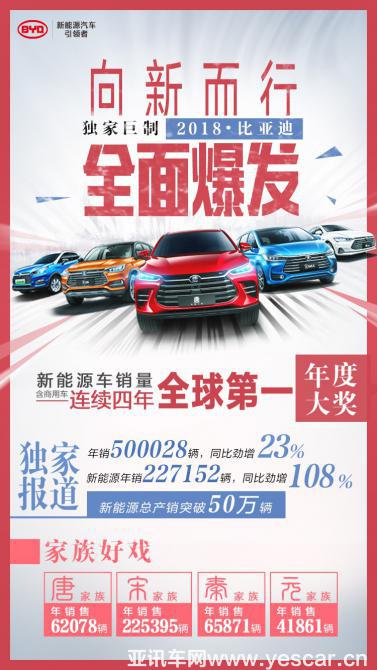 2018年,在“向新而行”品牌主張下,比亞迪全面步入“造車新時代”,以自我變革、勇于創(chuàng)新的魄力,以全面布局的強大實力和快速推新的執(zhí)行力,在新技術(shù)、新產(chǎn)品、新能源、新渠道、新服務(wù)上全面實現(xiàn)突破。
