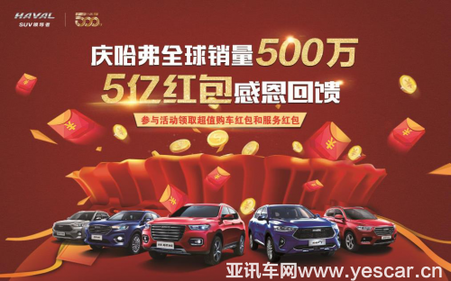 從現(xiàn)在開始到2月28號,不論是老客戶還是即將加入哈弗大家庭的新客戶,均可分享5億的驚喜。紅包分為購車紅包和服務(wù)紅包兩大類,其中購車紅包專為哈弗準(zhǔn)車主而設(shè),金額從1000元到4999元不等;老車主們則都可以享受服務(wù)紅包,其中包括維保紅包、精品紅包、保險(xiǎn)紅包、延保紅包,一應(yīng)俱全、數(shù)額可觀。所有人通過掃描活動二維碼或下載“哈弗智家”APP即可參與搶紅包活動,享受哈弗精心打造的這場新春紅包盛宴。