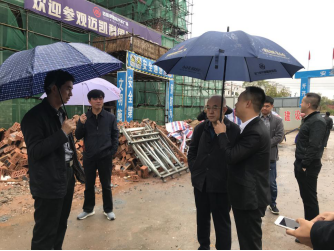 上圖:王篤洋會長在區(qū)政府相關(guān)領(lǐng)導(dǎo)及邁凱利負責人陪同下冒雨實地考察