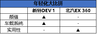 之所以選擇這兩款車,原因是:首先,這二者車型都為小型車,目前全國市場這類緊湊型車市場最大,無疑也最為實用;其次,在年輕人普遍囊中羞澀情況下,新特DEV 1和北汽EX 360補貼后售價都能控制在8萬元附近,性價比高,顯得極為親民;最后,大家普遍患有“里程焦慮”,兩車都能保證300公里以上的續(xù)航,日常通勤出行不成問題。