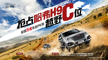 9月20日到10月20日,哈弗H9在網(wǎng)絡上推出“搶占哈弗H9越野C位”活動,在全國范圍內(nèi)征集“越野達人”,車友們反響熱烈,掀起了一股哈弗H9越野浪潮。