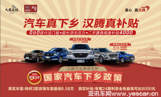3月1日,漢騰汽車正式推出“汽車真下鄉(xiāng),漢騰真補(bǔ)貼”的“汽車下鄉(xiāng)”惠民政策。據(jù)悉,該政策包括購車可享最高8000元補(bǔ)貼:專屬24期“0”息、“0”首付,最長4-5年低息超長貸;同時,漢騰汽車還推出舊車置換報廢政策,最高可享4000元二手置換報廢補(bǔ)貼。這一系列實實在在的惠民補(bǔ)貼,引發(fā)了鄉(xiāng)村消費(fèi)者的搶購風(fēng)暴。
