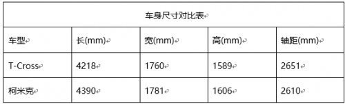 與堂兄弟柯米克的尺寸數(shù)據(jù)(長(zhǎng)寬高分別為4390/1781/1593mm,軸距達(dá)到2610mm)相比,T-Cross長(zhǎng)寬高尺寸上稍顯遜色,乘坐及儲(chǔ)物空間方面表現(xiàn)上不相仲伯,都能充分滿(mǎn)足日常家用需求。