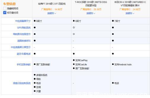 如今,要說國內(nèi)最熱門的車型當(dāng)然還是SUV,為滿足年輕人消費需求,SUV在外觀、內(nèi)飾、空間、性能、價格等各方面相比其它車型更有出彩表現(xiàn),在品質(zhì)上,部分自主SUV甚至超越了合資車型。哈弗SUV作為SUV市場引領(lǐng)者,一直以品質(zhì)取勝,大眾探歌、本田CR-V分別是德、日系SUV代表,自主PK合資怎么選?小編今天就選取這三款SUV的頂配版2019款2.0T四驅(qū)i悅哈弗F7、2018款1.4T四驅(qū)豪華型T-ROC探歌、2019款1.5T四驅(qū)尊耀版本田CR-V進行全面對比,供年輕朋友選車參考。