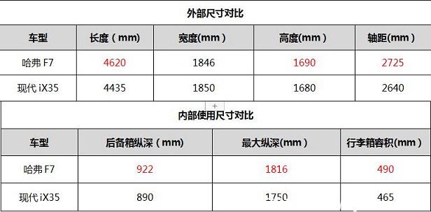 空間方面,現(xiàn)代ix35的軸距和車身長(zhǎng)度都比哈弗F7要短,整體氣場(chǎng)上略遜一籌。哈弗F7的長(zhǎng)寬高分別為4620/1846/1690mm,軸距達(dá)到了2725mm,達(dá)到了中型SUV的級(jí)別,而現(xiàn)代ix35的長(zhǎng)寬高分別為4435mm/1850mm/1715mm,軸距只有2640mm,這是一款典型的緊湊型SUV的尺寸,所以兩款車型的空間差距還是很明顯的。得益于2725mm的長(zhǎng)軸距,哈弗F7能夠?yàn)檐噧?nèi)乘客帶來更加從容的腿部空間,加上更大的后備箱縱深空間,哈弗F7在載客、載物方面都更游刃有余。尤其是全平地板設(shè)計(jì),以及完全能放平的后排座椅,為年輕的情侶們出行提供了一張溫馨浪漫的“雙人床”。
