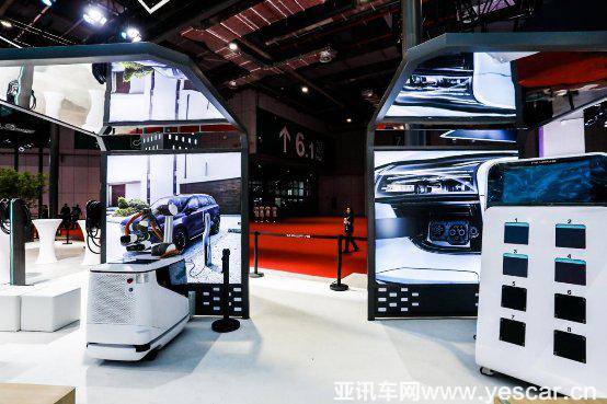 在智慧能源體驗區(qū)中,用于租賃能量續(xù)航包所打造的能源充電柜,代表了愛馳汽車“5 AI”方案中,延長續(xù)駛里程,提供無憂增程的“AI行”; 代表“AI家”的AI交流充電樁,則可實現(xiàn)車主隨時隨地開啟充電的需求,也可以通過一鍵預(yù)約功能,自由設(shè)定充電時間,在夜間享受低谷電價;代表“AI慧”的充電機(jī)器人能夠在充電車位不足的場景下,通過客戶端APP隨叫隨到,提供全自動充電體驗;