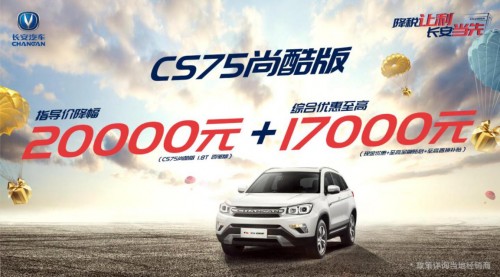 新CS75至高綜合優(yōu)惠21000元(指導(dǎo)價下調(diào)5000元、現(xiàn)金優(yōu)惠5000元、至高金融貼息6000元、至高置換補貼5000元)