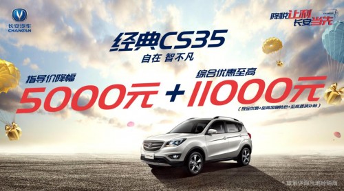 優(yōu)惠信息:此次優(yōu)惠,經(jīng)典CS35至高綜合優(yōu)惠16000元(指導(dǎo)價下調(diào)5000元、現(xiàn)金優(yōu)惠5000元、至高金融貼息3000元、至高置換補貼3000元)