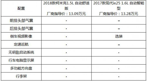 車輛配置作對(duì)比,柯米克勝過(guò)現(xiàn)代ix25