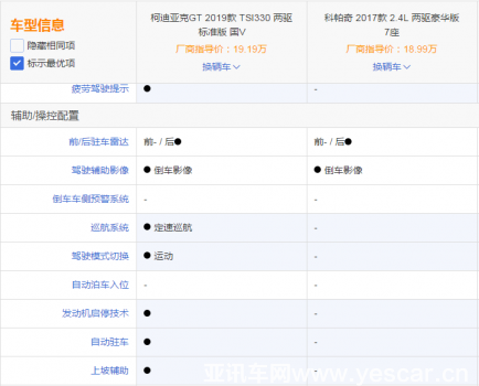 配置方面,科帕奇多了前排側(cè)氣囊,無鑰匙進(jìn)入、啟動(dòng)、前排座椅電動(dòng)調(diào)節(jié)加熱功能等,柯迪亞克GT則有10.25吋寬屏液晶儀表、發(fā)動(dòng)機(jī)啟停等諸多實(shí)用科技配置,實(shí)用性與便捷性上更勝一籌。