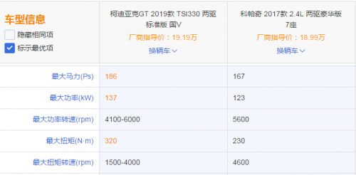 總結(jié):和柯迪亞克GT相比,科帕奇車型偏老是其最大的短板,不論是它那個(gè)2.4L自吸發(fā)動(dòng)機(jī)+6AT,還是內(nèi)飾上難以掩蓋的陳舊元素,不得不讓人感嘆汽車的進(jìn)步最近幾年真的是日新月異,燃燒效率越來越高,排量越來越小。盡管有7座可選,但是后面2座實(shí)際利用率較低,配置上也不如柯迪亞克GT豐富實(shí)用。從外觀、空間、配置及動(dòng)力諸多方面對比得出,柯迪亞克GT比科帕奇性價(jià)比更高,值得注重實(shí)用性的家庭用戶選購。