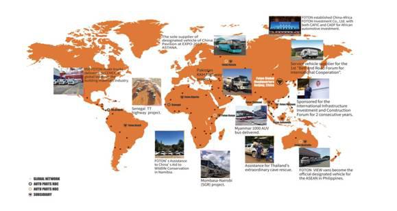 在“一帶一路”沿線34個(gè)國家和地區(qū),福田汽車?yán)塾?jì)開發(fā)完成超過70個(gè)重要大客戶項(xiàng)目。目前,福田汽車服務(wù)了塞內(nèi)加爾TT鐵路、肯尼亞蒙內(nèi)鐵路、巴基斯坦KKH公路、緬甸最大公共交通系統(tǒng)、阿斯塔納世博會(huì)、東南亞國家聯(lián)盟峰會(huì)等“一帶一路”國際重點(diǎn)工程項(xiàng)目,累計(jì)“一帶一路”商用車交車超過5000臺(tái)。