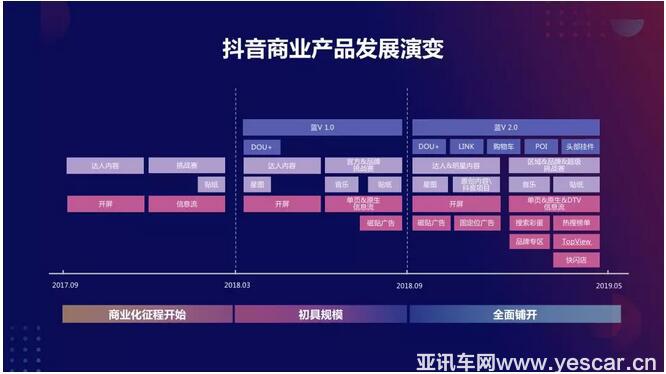 內(nèi)容方面,隨著現(xiàn)代人們興趣和關(guān)注點(diǎn)的變化,抖音的熱門(mén)內(nèi)容類型不只有歌曲舞蹈這樣滿足視聽(tīng)感官的內(nèi)容,生活化的輕松娛樂(lè)內(nèi)容,而且垂直細(xì)分類的達(dá)人內(nèi)容也在不斷發(fā)展;廣告方面,抖音上的廣告已經(jīng)從最初把產(chǎn)品信息與抖音風(fēng)格做拼接,轉(zhuǎn)變?yōu)閺V告融入內(nèi)容,再到和抖音平臺(tái)的融合;商業(yè)產(chǎn)品方面,抖音也在迅速迭代,演進(jìn)到藍(lán)V2.0時(shí)代,POI、購(gòu)物車、頭部掛件等功能上線。