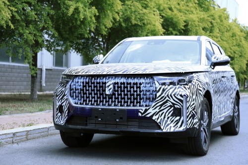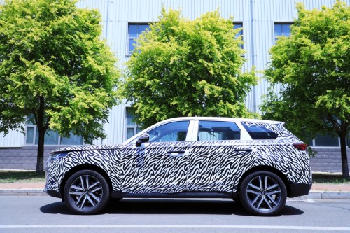 車身偽裝更為嚴密,但流暢剛毅的線條一覽無余。仔細看會發(fā)現(xiàn)車身型面進行了內(nèi)陷式設計,增強立體感,應該也考慮了空氣動力學,以便更好的降低風阻減少風噪。輪轂更接近于三角形態(tài),預計這樣的穩(wěn)固式設計會帶來更好的操控性。