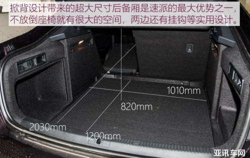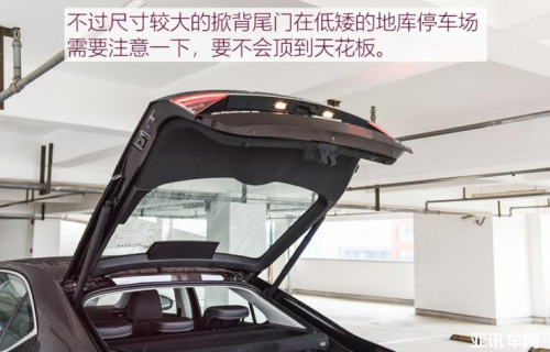 乘坐空間屬于正常水平,如果能再加個全景天窗就更完美了。前排頭部4指,不會覺得有壓抑感,座椅舒適性也不錯,它的座椅版型夠寬,而且柔軟度也不錯,在中型車中是正常水平,后排也沒有因為溜背造型而影響太多頭部空間。此外還有一個超大的后備廂,堪比五座中型SUV的尺寸,不用放倒后排就有很充裕的空間。只是要小心尾門,這臺TSI330高配車型有電動尾門,開啟時要小心上方。