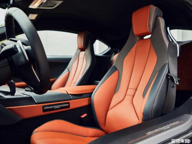 內(nèi)飾方面,新車采用了大面積的皮質(zhì)包裹,色彩上為黑色與橘色的撞色搭配,視覺效果上有著很強(qiáng)的運(yùn)動(dòng)范。在門檻和中控區(qū)域的飾板上,標(biāo)有“Ultimate Sophisto Edition”字樣,并且為了表明其限量版的獨(dú)特身份,還加入了“1 of 200”的標(biāo)識(shí)。