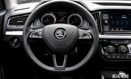 三輻式的多功能方向盤延續(xù)了斯柯達(dá)的經(jīng)典樣式,尺寸大小適中,握感相對(duì)舒適,而兩側(cè)的多功能鍵采用了滾輪式設(shè)計(jì),控制起來不容易出錯(cuò)且極易上手。還配備定速巡航。